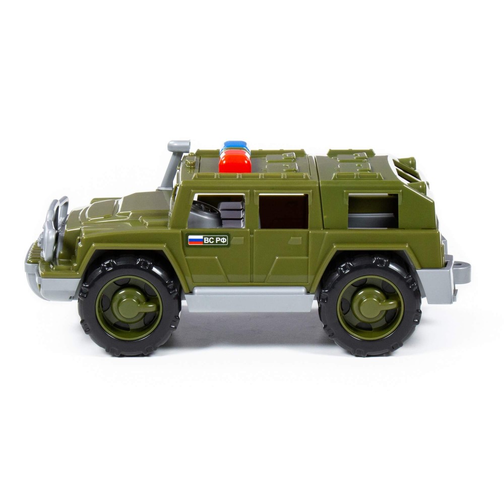 Серия автомобилей «Защитник» от фабрики «Полесье» выполнена в соответствии с реальными аналогами военной техники. Автомобиль-джип военный патрульный "Защитник" изготовлен в защитном цвете, имеет вместительный багажник с тентом (тент съёмный), на крыше автомобиля установлены красно-синие проблесковые маячки. В этой комплектации предусмотрен шноркель - выведенный на уровень крыши автомобиля воздухозабор двигателя. Играть разными машинками и иметь разнообразный автопарк особенно важно для мальчиков. Таким образом, ребёнок знакомится с видами транспортных средств, находит отличия и изучает их устройство. Благодаря прочности материала, из которого изготовлен автомобиль-джип военный патрульный "Защитник", игрушка долго будет радовать ребёнка!
