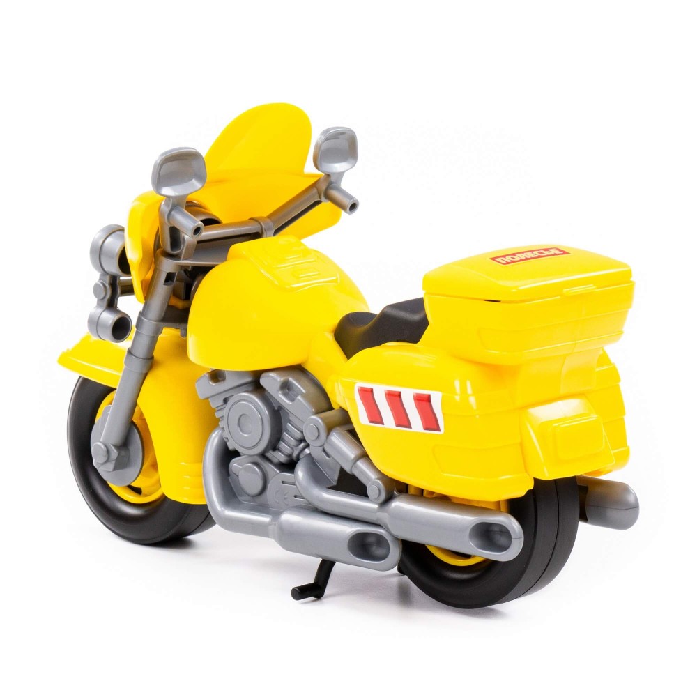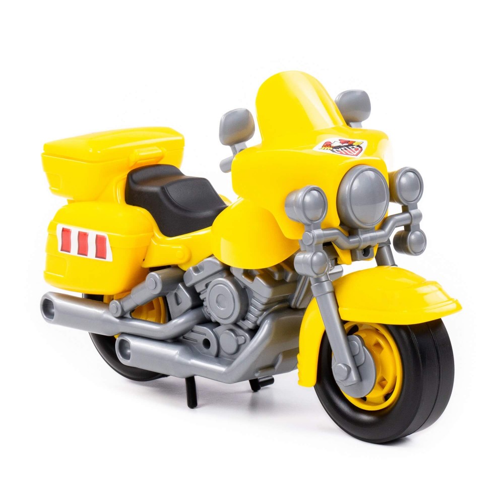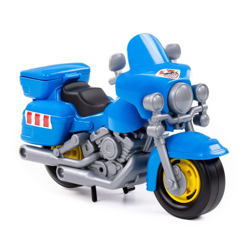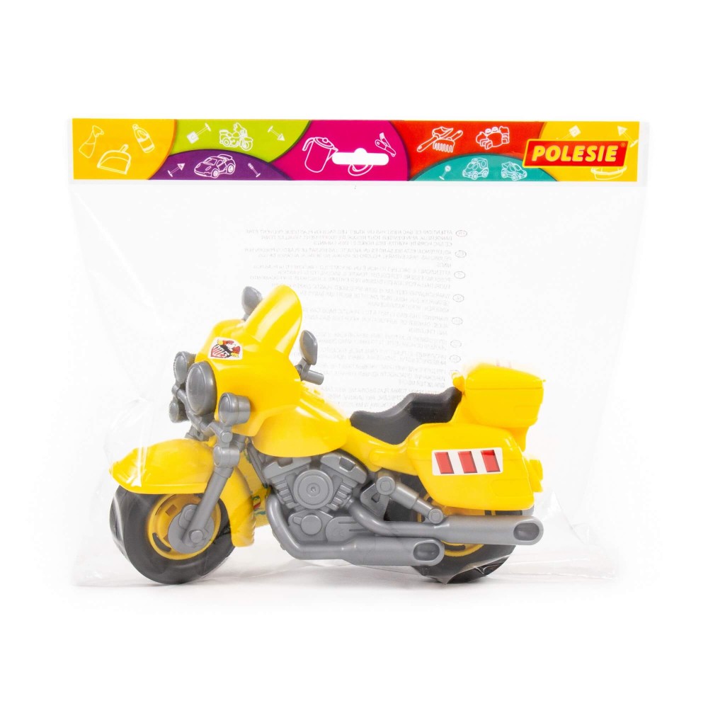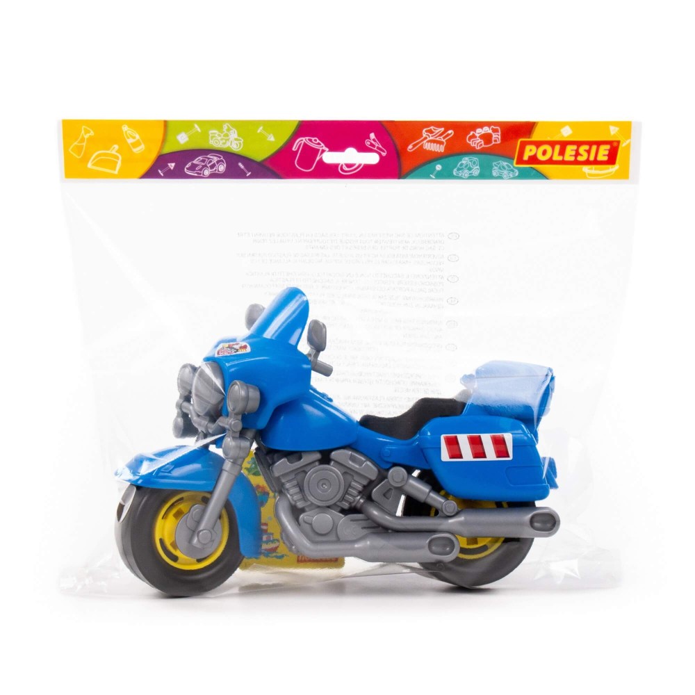 В игрушечном автопарке должно быть место не только для автомобилей, но и для мотоциклов! Фабрика «Полесье» предлагает поиграть миниатюрными моделями байков. Игрушка особенно будет интересна для маленьких лихачей. Дизайн мотоцикла полицейского «Харлей» выполнен максимально правдоподобно. Его можно использовать в качестве средства передвижения игрушечного героя. Руль байка поворачивается, имеются выдвижные/задвижные подножки, крышка багажника открывается. Таким образом, дети знакомятся с разными видами транспорта и находят в них отличия.