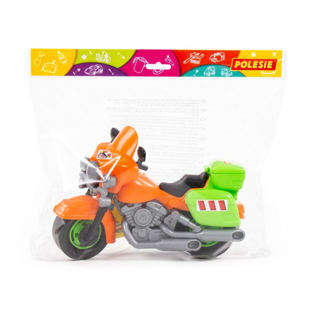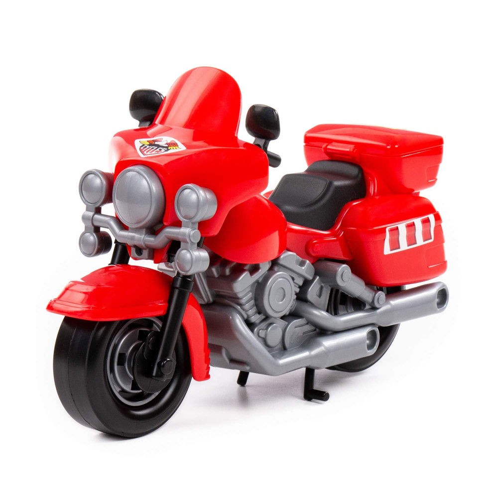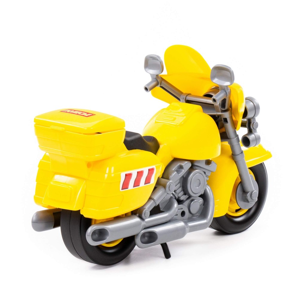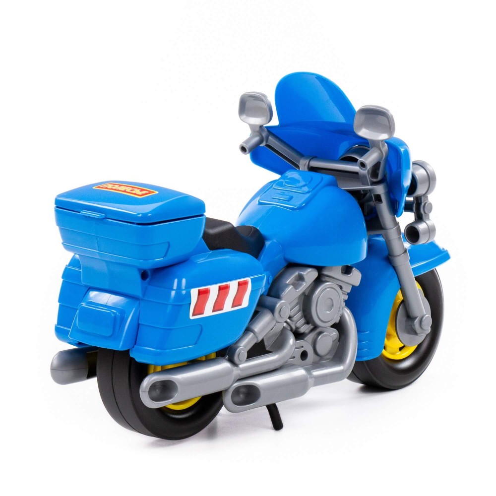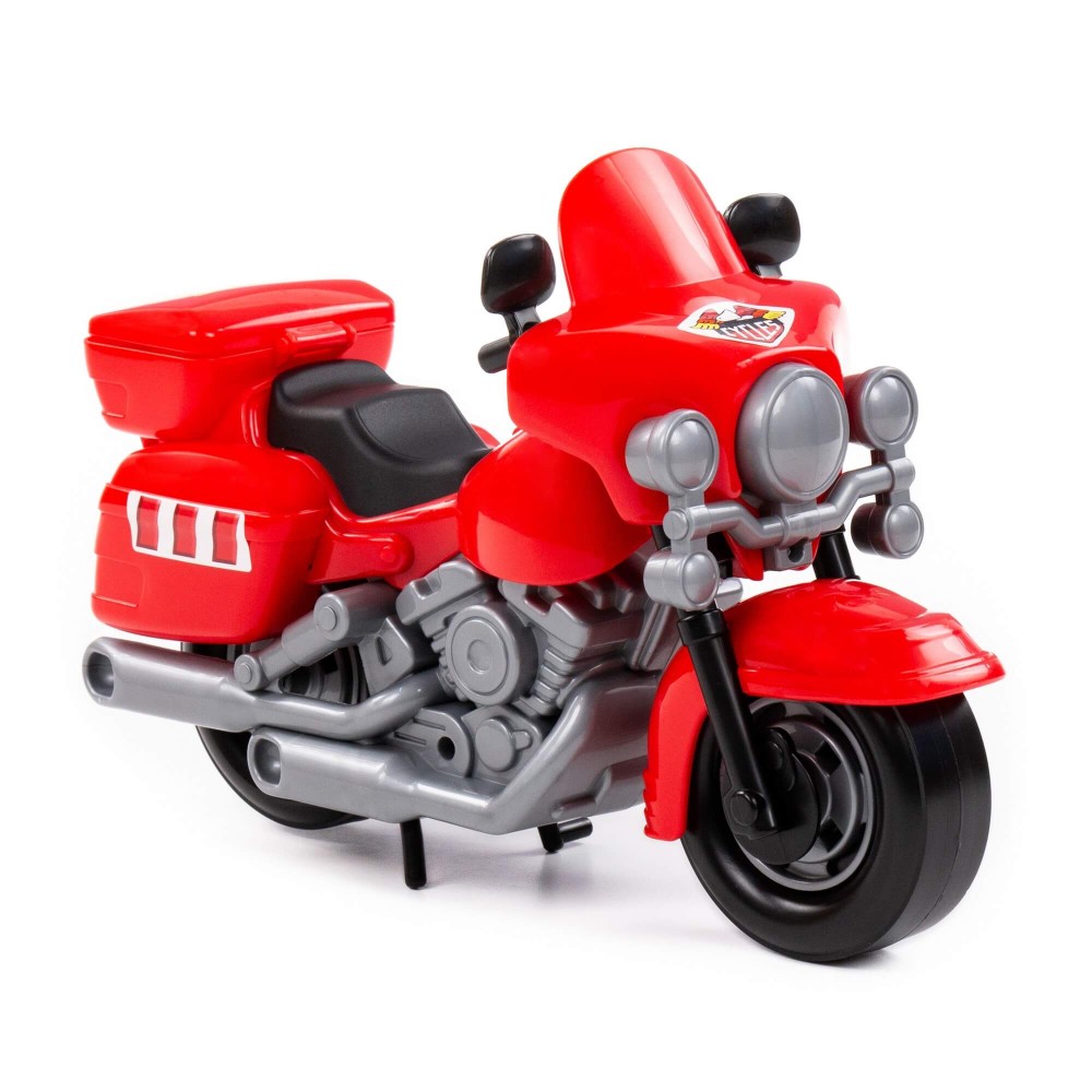 В игрушечном автопарке должно быть место не только для автомобилей, но и для мотоциклов! Фабрика «Полесье» предлагает поиграть миниатюрными моделями байков. Игрушка особенно будет интересна для маленьких лихачей. Дизайн мотоцикла полицейского «Харлей» выполнен максимально правдоподобно. Его можно использовать в качестве средства передвижения игрушечного героя. Руль байка поворачивается, имеются выдвижные/задвижные подножки, крышка багажника открывается. Таким образом, дети знакомятся с разными видами транспорта и находят в них отличия.