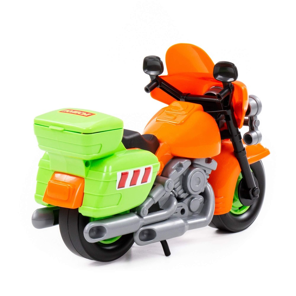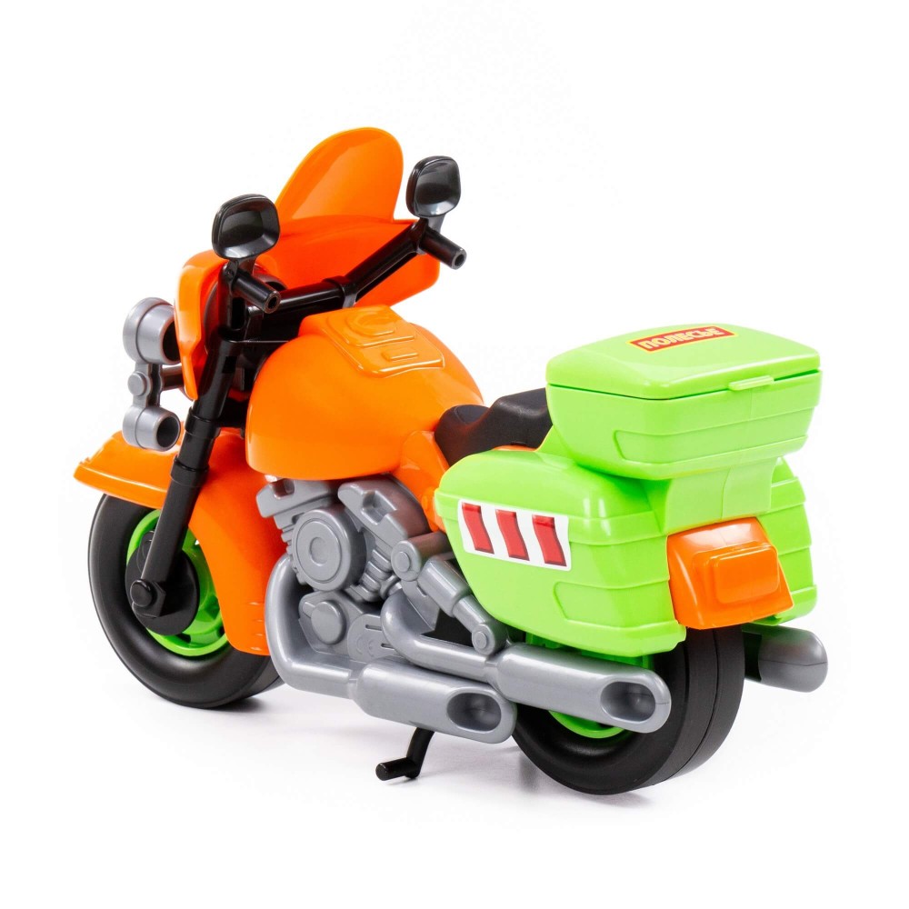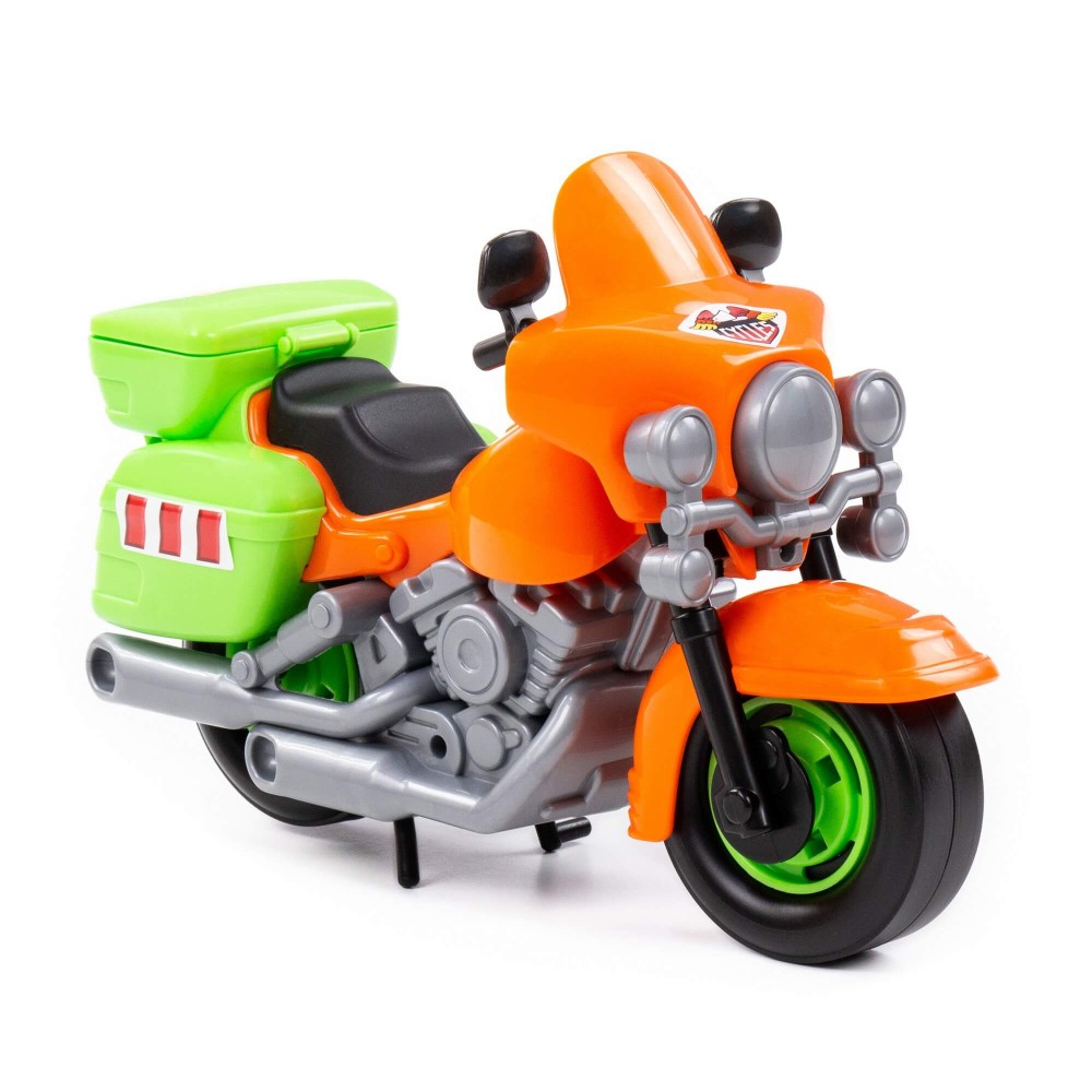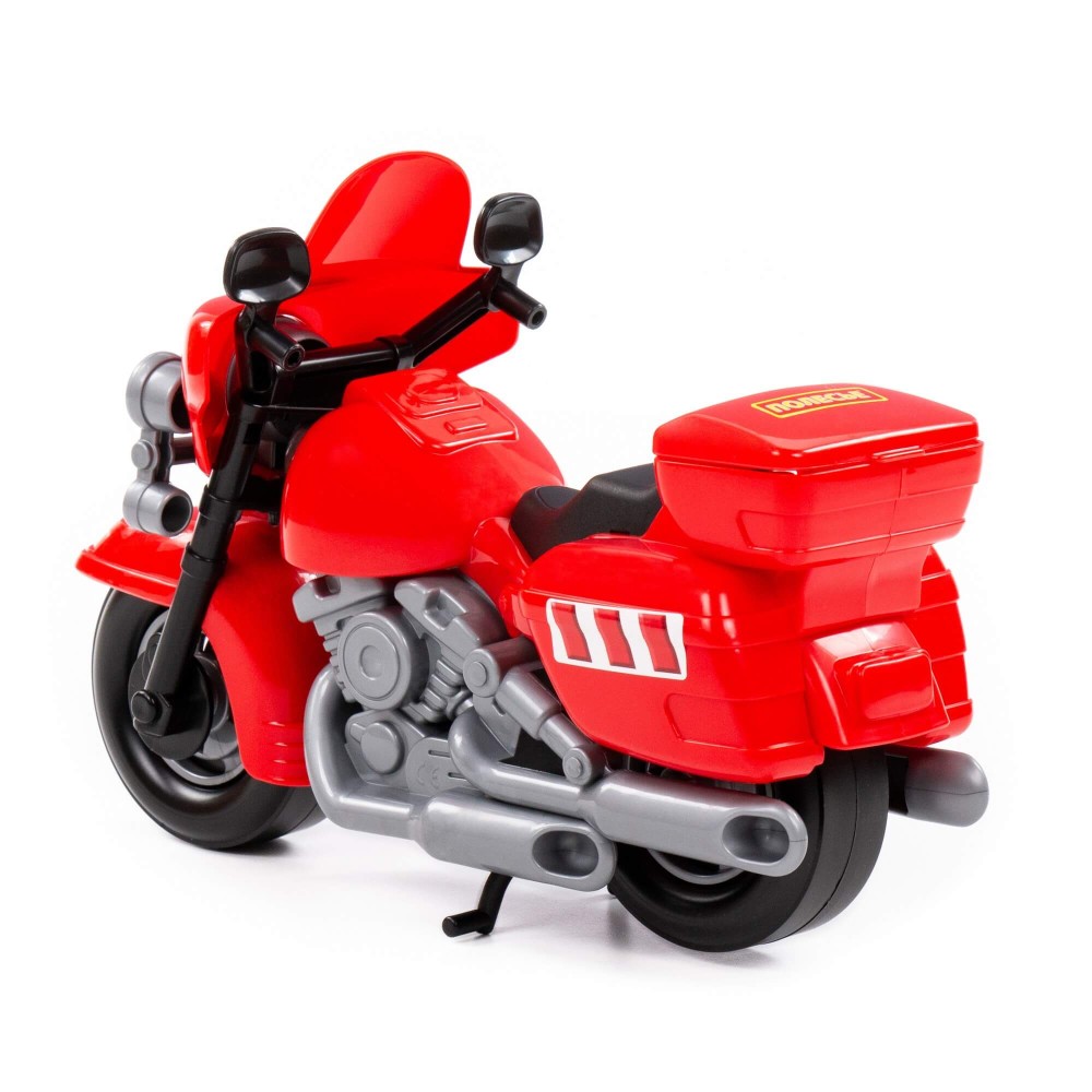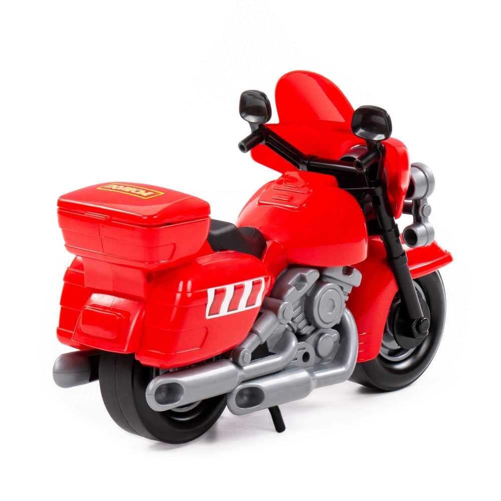 В игрушечном автопарке должно быть место не только для автомобилей, но и для мотоциклов! Фабрика «Полесье» предлагает поиграть миниатюрными моделями байков. Игрушка особенно будет интересна для маленьких лихачей. Дизайн мотоцикла полицейского «Харлей» выполнен максимально правдоподобно. Его можно использовать в качестве средства передвижения игрушечного героя. Руль байка поворачивается, имеются выдвижные/задвижные подножки, крышка багажника открывается. Таким образом, дети знакомятся с разными видами транспорта и находят в них отличия.