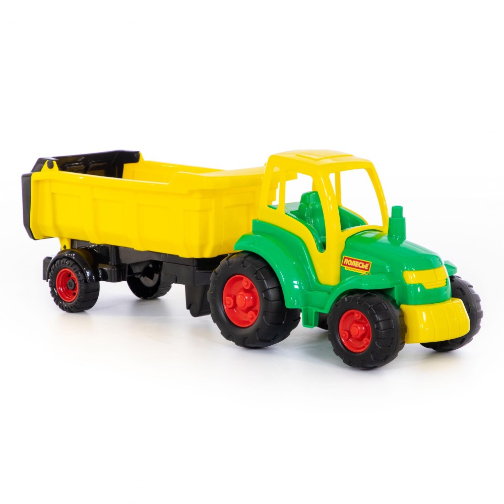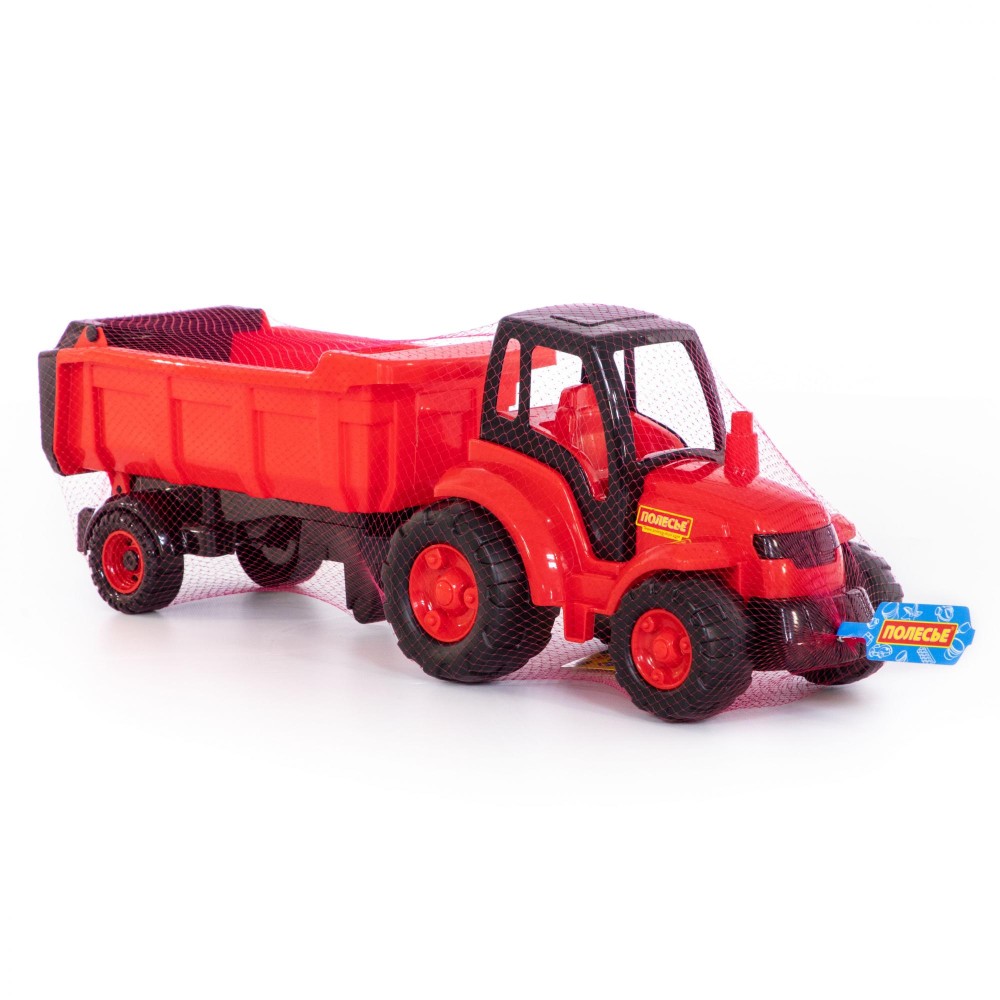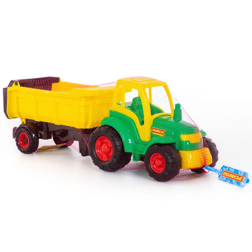 Игрушки в виде спецтехники и тракторов всегда интересны детям. Они позволяют узнать тонкости использования такого транспорта в разных отраслях, побуждают к определению наиболее интересной для себя профессии. "Чемпион" трактор с полуприцепом (в сеточке) выглядит очень реалистично.