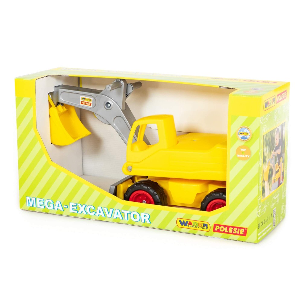 Мега-экскаватор колёсный от фабрики «Полесье» выполнен из высококачественного пластика. На экскаватор ребёнок может садиться как на каталку. Сиденье экскаватора поворачивается на 360°. С помощью рычагов малыш самостоятельно может управлять стрелой и ковшом экскаватора. Также экскаватор оснащён съёмной лопатой-грейдером, которой можно выравнивать поверхность в песочнице. Игра с Мега-экскаватором колёсным прививает первоначальные трудовые навыки, знакомит с принципами работы некоторых механизмов, развивает координацию движений и пространственное мышление. Игрушка поставляется в яркой подарочной коробке.