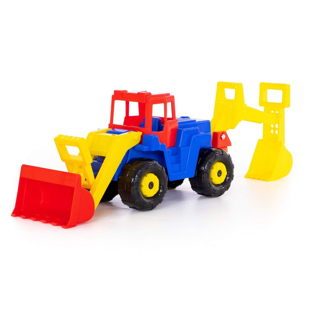 Что может быть лучше экскаватора? Только трактор-экскаватор с фронтальным ковшом погрузчиком. Ведь количество вариантов игр у малыша с такой машинкой сразу увеличивается в несколько раз. Оба ковша подвижны и функциональны. Их движения очень похожи на работу реальной специальной техники. Малыш во время игры имеет максимальную возможность самовыражения. Ощутить себя строителем с такой игрушкой легко. «Батыр» прекрасно подходит для игры на свежем воздухе. Подобная машинка всегда становится главным объектом игр в песочнице, и безусловно вызывает интерес у окружающих детей. Это позволяет малышам проще знакомиться, общаться и взаимодействовать друг с другом.