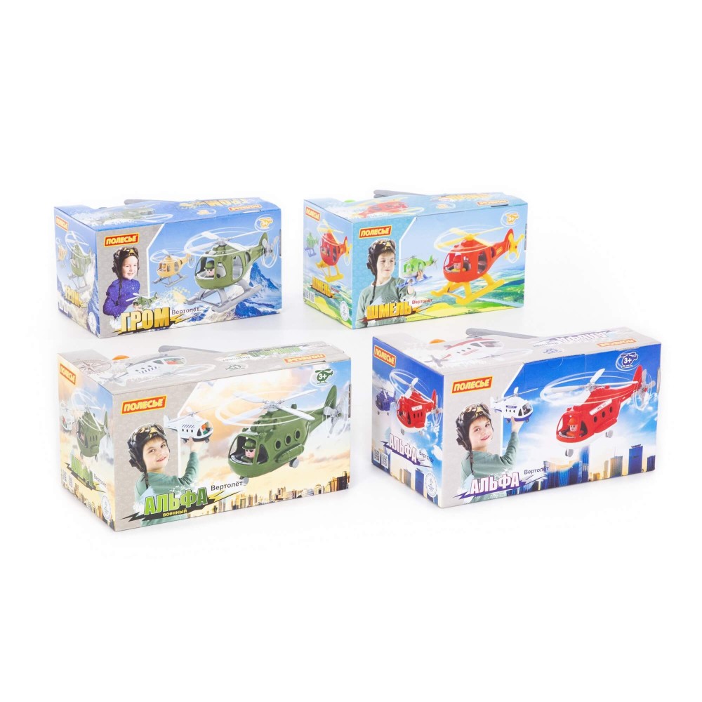 Вертолёты от фабрики «Полесье» — это игрушки, которая имеют округлую форму и стильный дизайн. Лопасти вертолётов подвижны, это позволяет сделать игру более реалистичной и захватывающей. Кабина имеет окна и оснащена сиденьями. В комплект входит фигурка пилота. Также конструкция вертолётов предполагает наличие шасси с колёсиками. Они позволяют передвигать игрушку по плоской поверхности и способствуют созданию различных игровых сценариев. Вертолёты выполнены в различных цветовых решениях. Поставляются в яркой полиграфии.