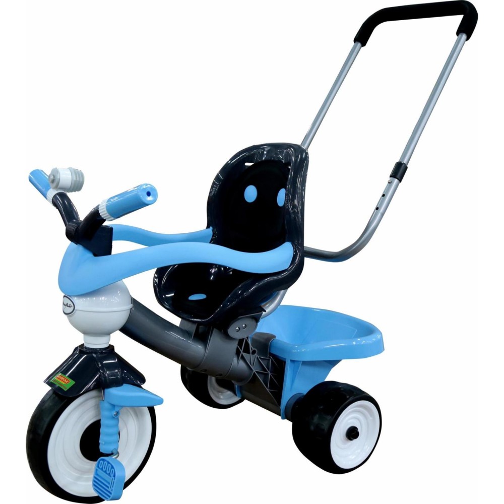 Данная модель трёхколёсного велосипеда серии «Амиго» оснащена ручкой управления, которая регулируется по высоте: нужно нажать на кнопку и зафиксировать ручку. Для удобства управления на ручке имеется мягкая накладка. Эргономичное сиденье велосипеда, дополнительная подставка для ножек и съёмная дуга-ограничитель способствуют комфортному и безопасному перемещению ребёнка. На руле миниатюрного транспорта установлен клаксон, при нажатии на который раздаётся сигнал. Позади велосипеда располагается корзина, что позволяет брать необходимые вещи малыша с собой. Так прогулка на свежем воздухе превратится в увлекательное путешествие, а сам малыш научится ловкости. Езда на велосипеде также развивает координацию движений и укрепляет определённые группы мышц (особенно ног). В этой модели колёса выполнены из вспененного каучука (современного полимерного материала), за счёт чего происходит лучшее сцепление колёс.