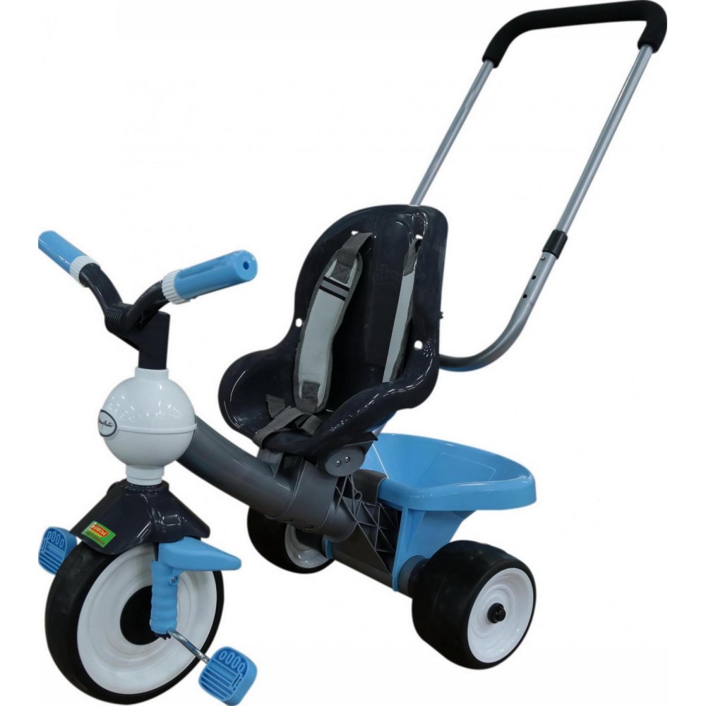 Данная модель трёхколёсного велосипеда серии «Амиго» оснащена ручкой управления, которая регулируется по высоте: нужно нажать на кнопку и зафиксировать ручку. Для удобства управления на ручке имеется мягкая накладка. Эргономичное сиденье велосипеда, ремни фиксации кресла, дополнительная подставка для ножек способствуют комфортному и безопасному перемещению ребёнка. Позади велосипеда располагается корзина, что позволяет брать необходимые вещи малыша с собой. С такой игрушкой прогулка на свежем воздухе превратится в увлекательное путешествие, а сам малыш научится ловкости. Езда на велосипеде также развивает координацию движений и укрепляет определённые группы мышц (особенно ног). В этой модели колёса выполнены из вспененного каучука (экологически чистого полимерного материала), что объясняет их лучшее сцепление.