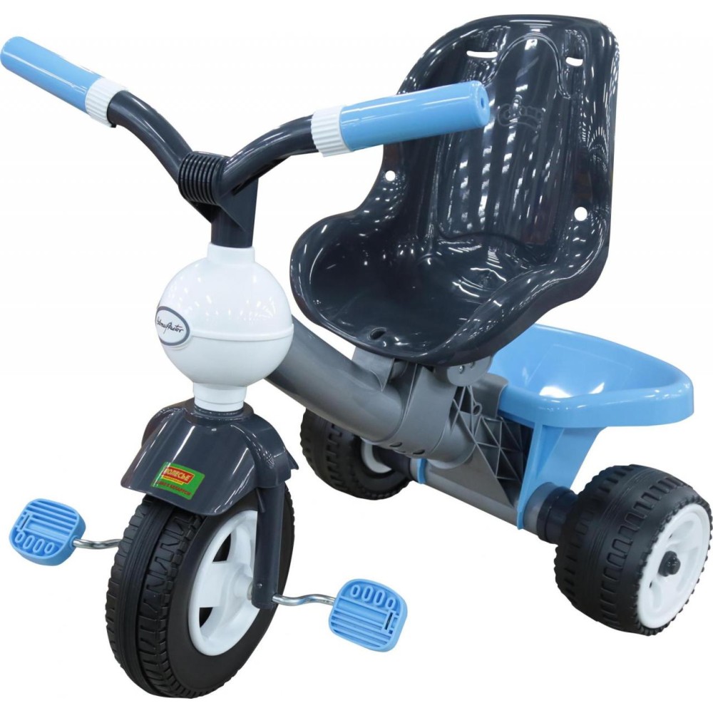 Данная модель трёхколёсного велосипеда серии «Амиго» самая простая. Позади велосипеда располагается корзина, что позволяет брать необходимые вещи малыша с собой. Езда на велосипеде развивает ловкость, координацию движений и укрепляет определённые группы мышц ребёнка (особенно ног). В этой модели задние колёса пластмассовые, переднее - с резиновой вставкой, за счёт чего происходит лучшее сцепление и более тихое движение транспорта.