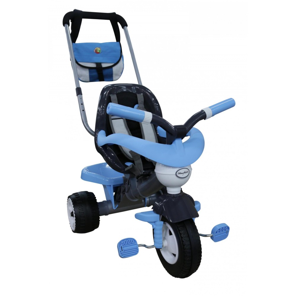 Данная модель трёхколёсного велосипеда серии «Амиго» оснащена ручкой управления, которая регулируется по высоте: нужно нажать на кнопку и зафиксировать ручку. Для удобства управления на ручке имеется мягкая накладка. Эргономичное сиденье велосипеда, ремни фиксации кресла, дополнительная подставка для ножек и съёмная дуга-ограничитель способствуют комфортному и безопасному перемещению ребёнка. Позади велосипеда располагается корзина, а в комплекте идёт прогулочная сумка, что позволяет брать необходимые вещи малыша с собой. С такой игрушкой прогулка на свежем воздухе превратится в увлекательное путешествие, а сам малыш научится ловкости. Езда на велосипеде также развивает координацию движений и укрепляет определённые группы мышц (особенно ног). В этой модели передние колёса пластмассовые, переднее - с резиновой вставкой, что объясняет лучшее сцепление колёс и более тихий ход транспорта.