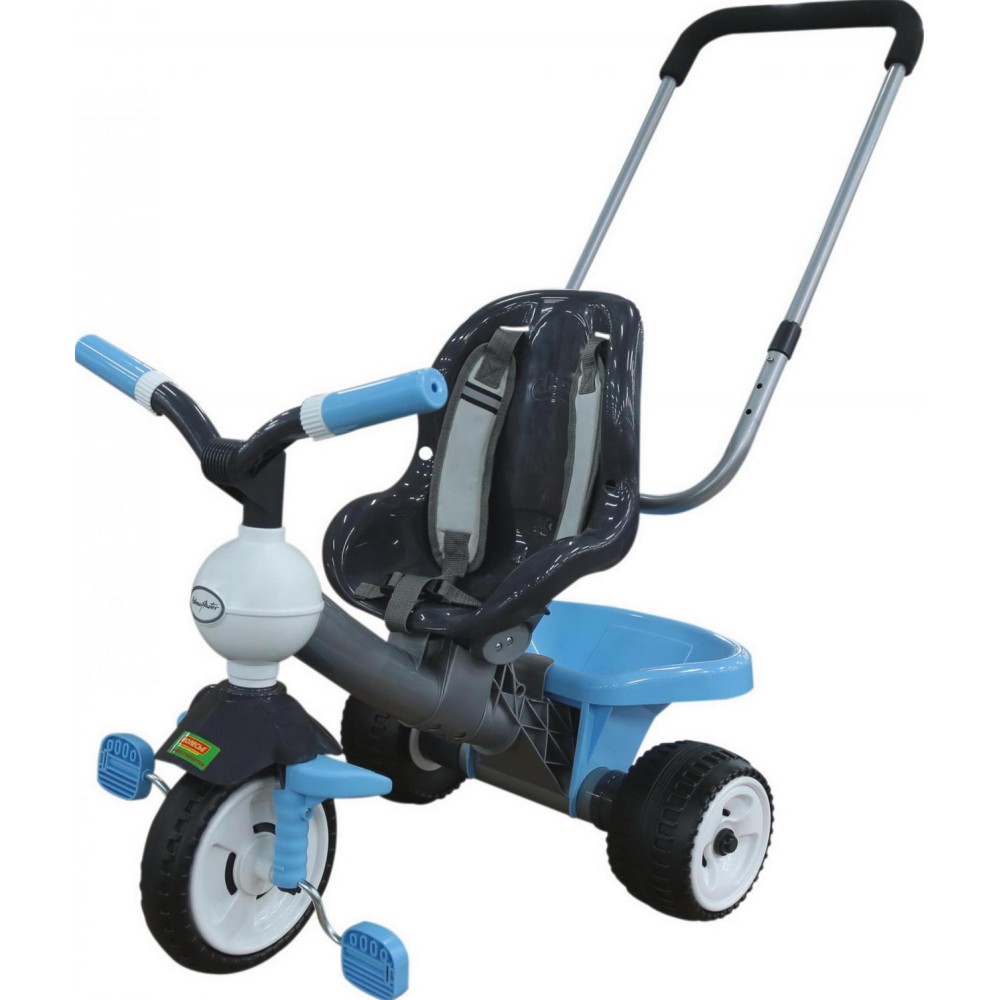 Данная модель трёхколёсного велосипеда серии «Амиго» оснащена ручкой управления, которая регулируется по высоте: нужно нажать на кнопку и зафиксировать ручку. Для удобства управления на ручке имеется мягкая накладка. Эргономичное сиденье велосипеда, ремни фиксации кресла и дополнительная подставка для ножек способствуют комфортному и безопасному перемещению ребёнка. Позади велосипеда располагается корзина, что позволяет брать необходимые вещи малыша с собой. С такой игрушкой прогулка на свежем воздухе превратится в увлекательное путешествие, а сам малыш научится ловкости. Езда на велосипеде также развивает координацию движений и укрепляет определённые группы мышц (особенно ног). В этой модели передние колёса пластмассовые, переднее - с резиновой вставкой, что объясняет лучшее сцепление колёс и более тихий ход транспорта.