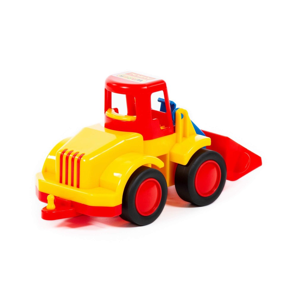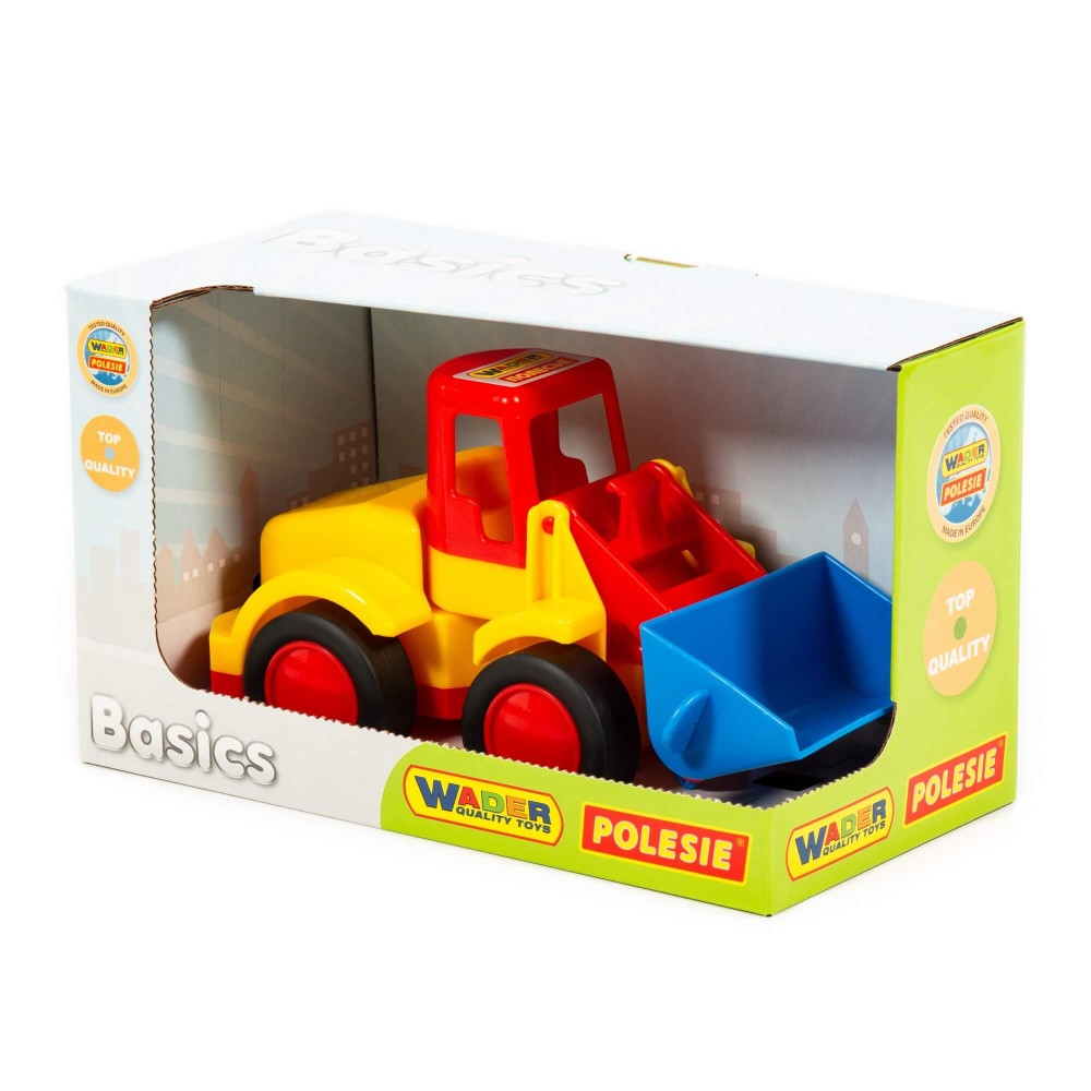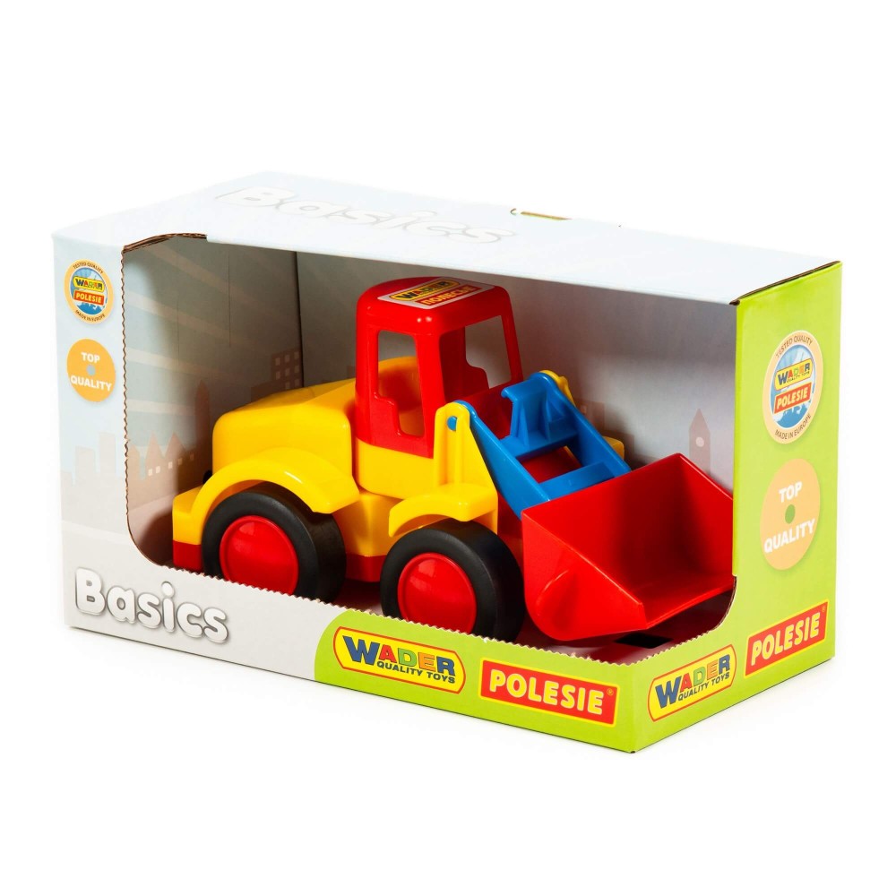 Стильные, удобные и небольшие машинки для малыша от фабрики «Полесье» — это серия «Базик». Они отличаются компактным размером, продуманной эргономикой, расцветкой и функционалом. Трактор-погрузчик имеет подвижный ковш, а для удобства управления предусмотрена специальная ручка на рукоятке ковша. Колёса погрузчика — с резиновыми накладками, что обеспечивает практически бесшумное катание игрушки на любой поверхности. А наличие буксировочной петли позволяет возить машинку за собой на верёвочке.